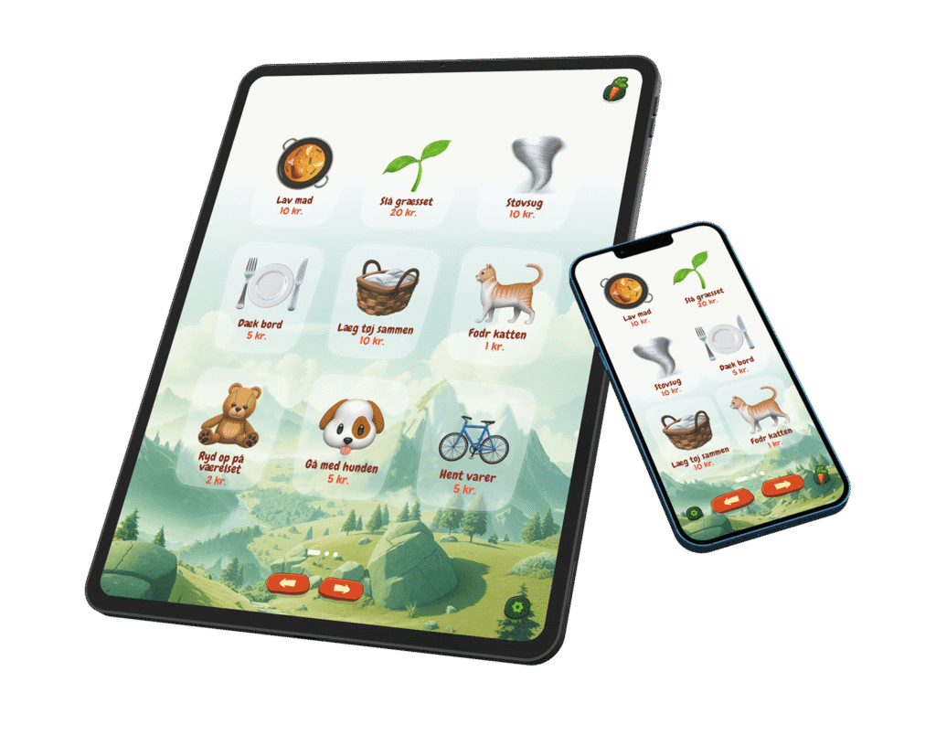 Tasks ’n Chores kører på telefoner, tablets, laptops — ja, selv den gamle iPad, der måske er hængt op på væggen. iOS-app, Android-app eller bare en browser og jeres familie-pincode er alt hvad der skal bruges.